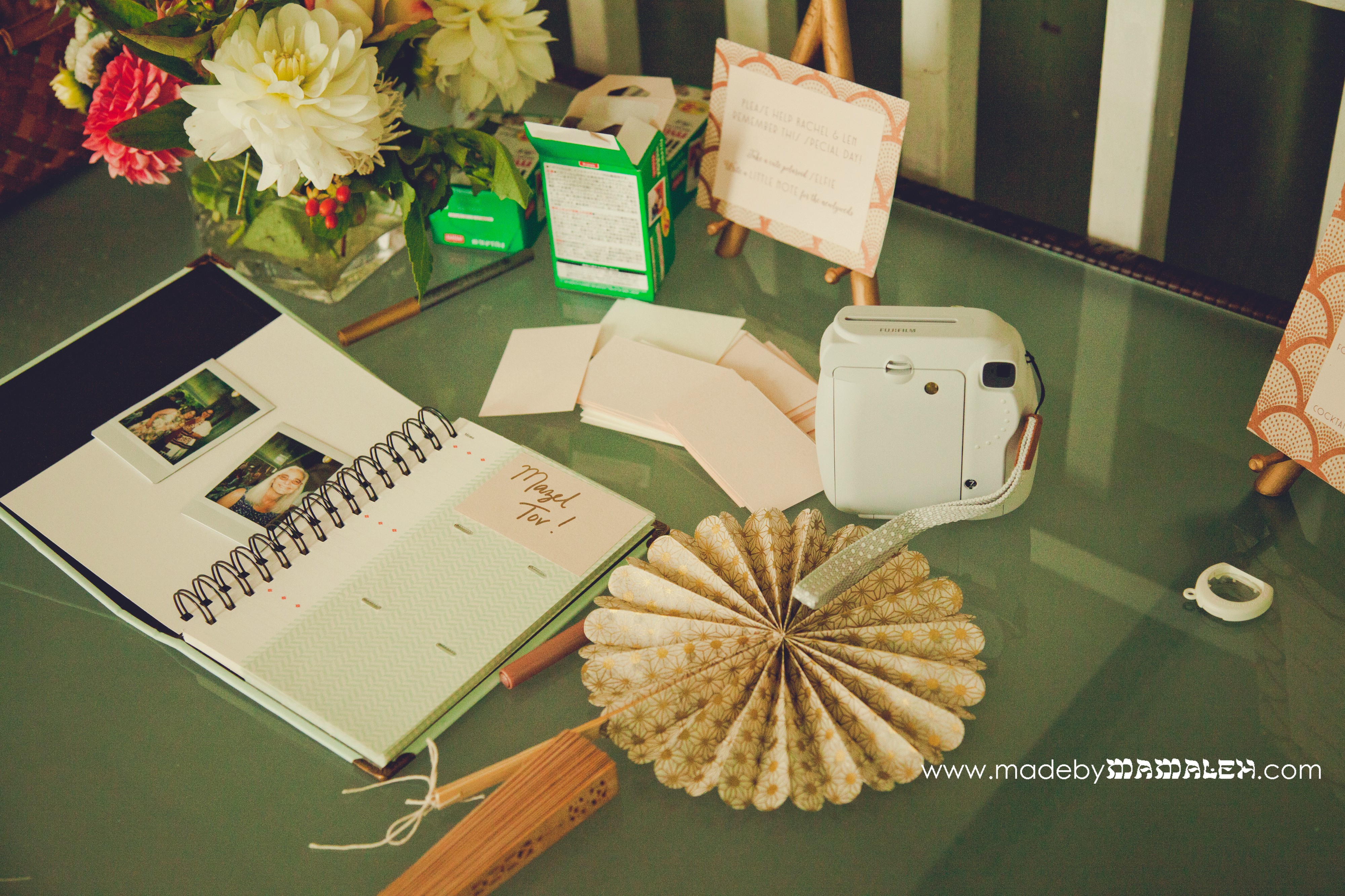 Photo by Kim Johnston PhotographyFinally, beyond the invites, I was able to carry the same technique forward for the wedding signage including directions for the Instax guest book! Simple and chic and full of love and light!