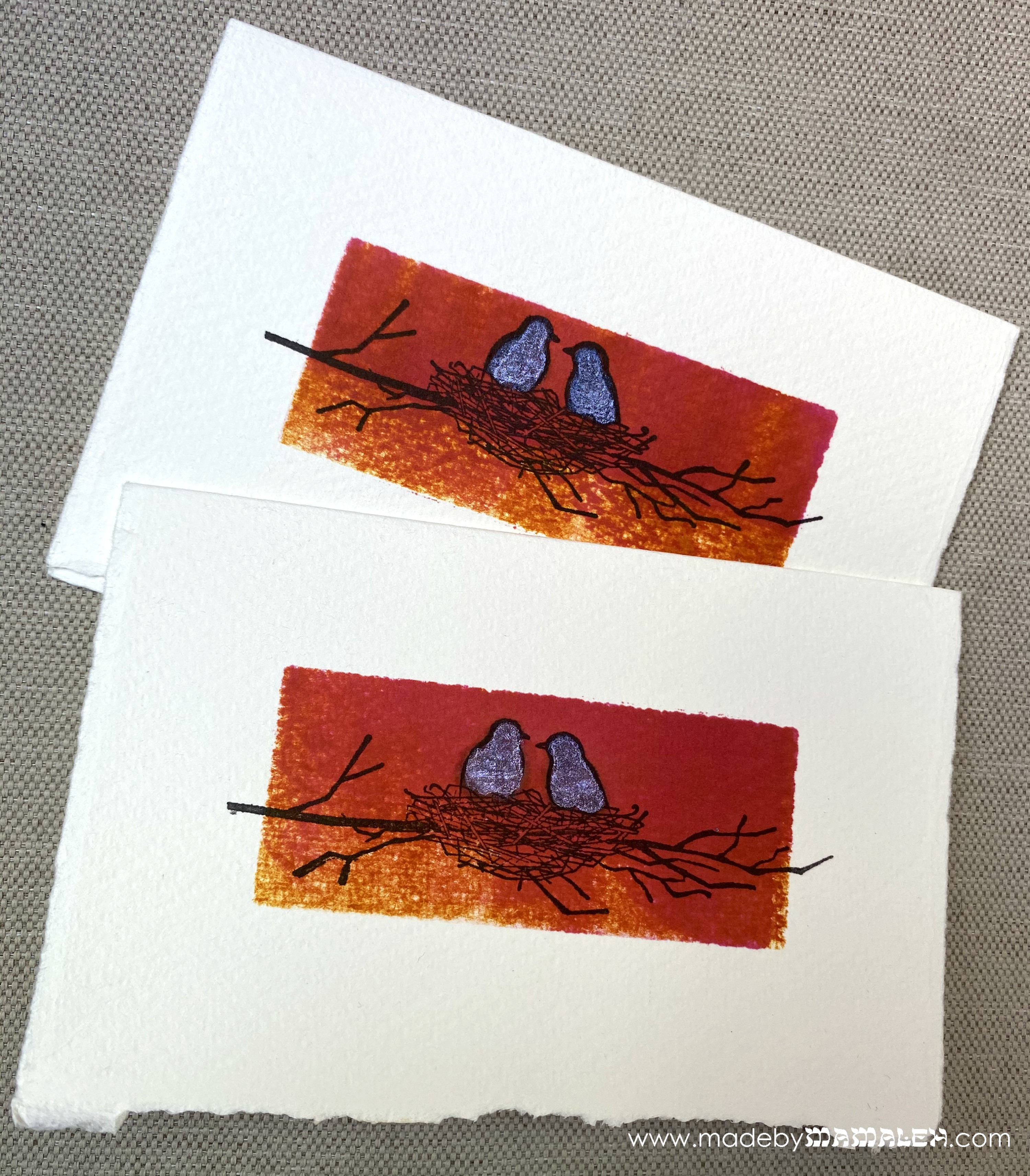 Nesting Bird Card Published November 28, 2020 at 3000 × 3426 in Made with Love: A Stationery Set ← Previous Next → Nesting Bird Card – used washi tape to block off a rectangle and blend inks. Then stamped retired Memory Box Nesting Birds and finished up with Twinkling H2Os on the birds. Nesting Bird Card madebymamaleh.com Share this: Click to email a link to a friend (Opens in new window) Email TweetLike Loading...