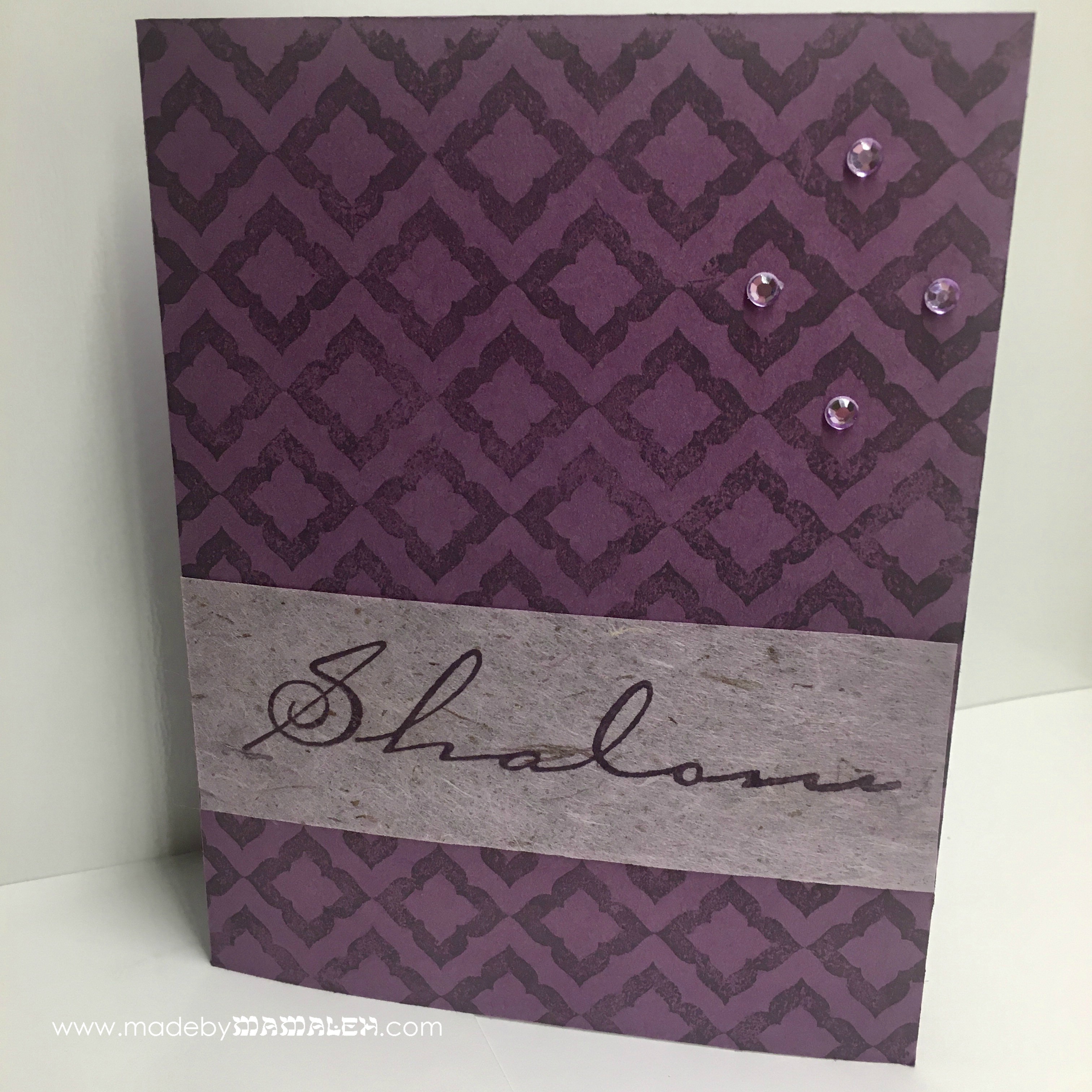 Shalom Published March 29, 2020 at 3024 × 3024 Plum Pudding Cardstock by PapertreyInk Shalom stamp was an ebay find Moroccan Tile Background Stamp by Impress VersaMagic Ink in Eggplant Misc. scrap paper Rhinestones Share this: Click to email a link to a friend (Opens in new window) Email TweetLike Loading...